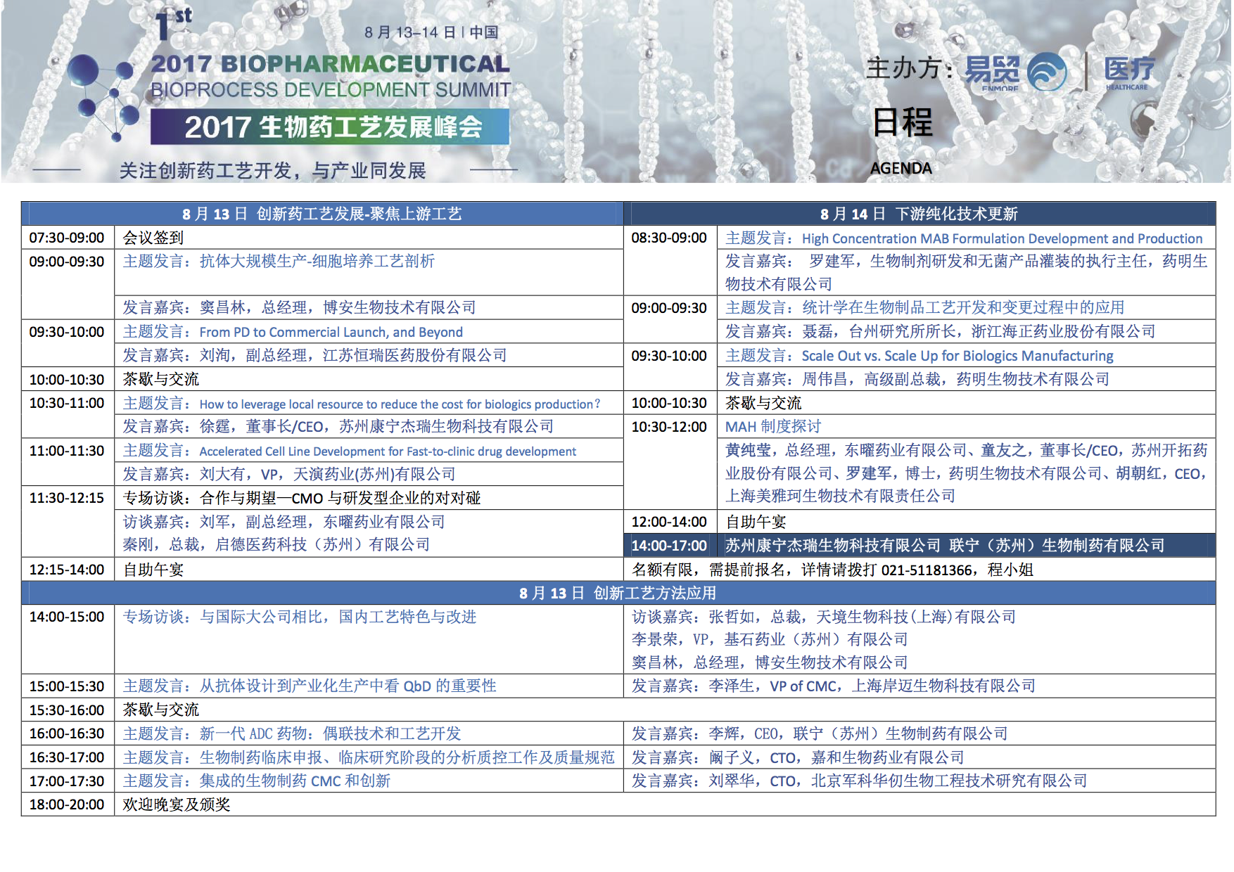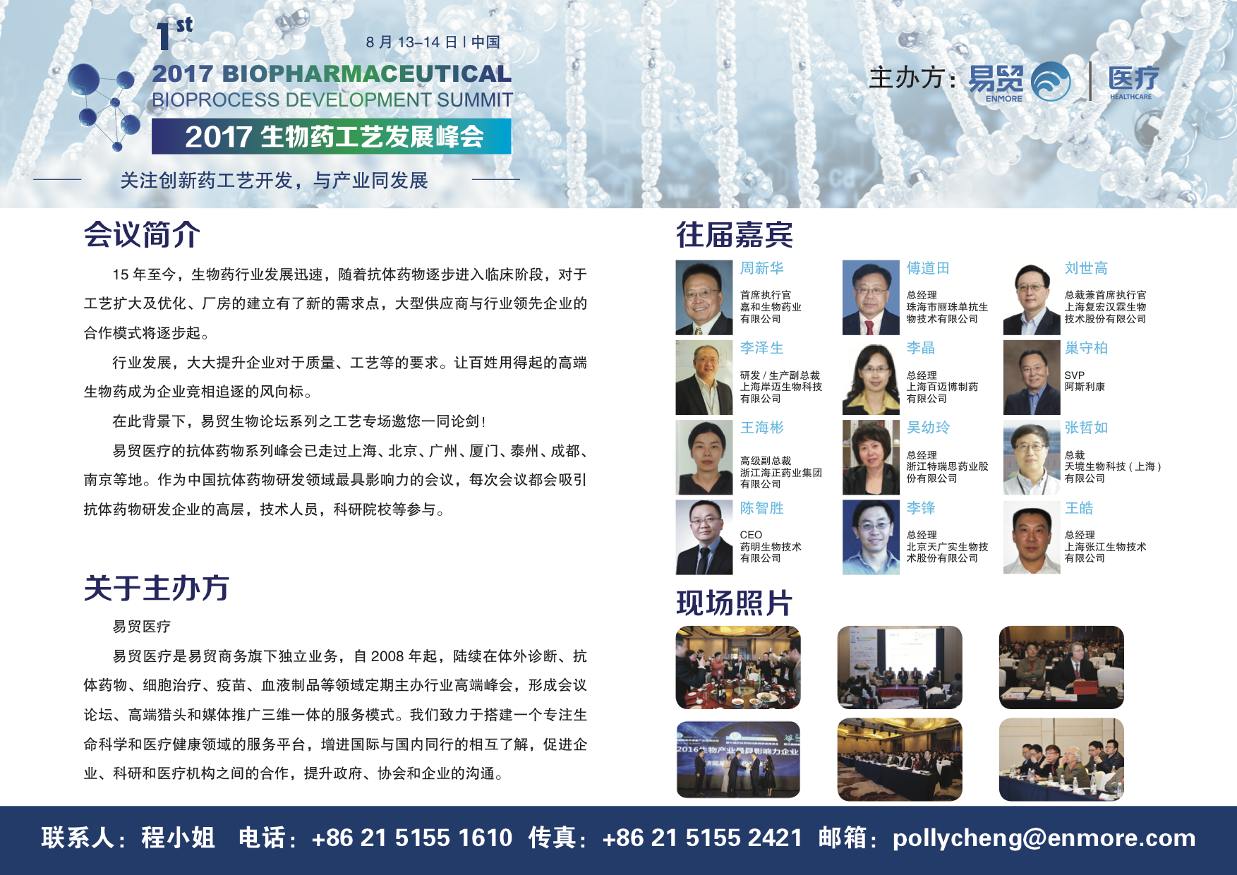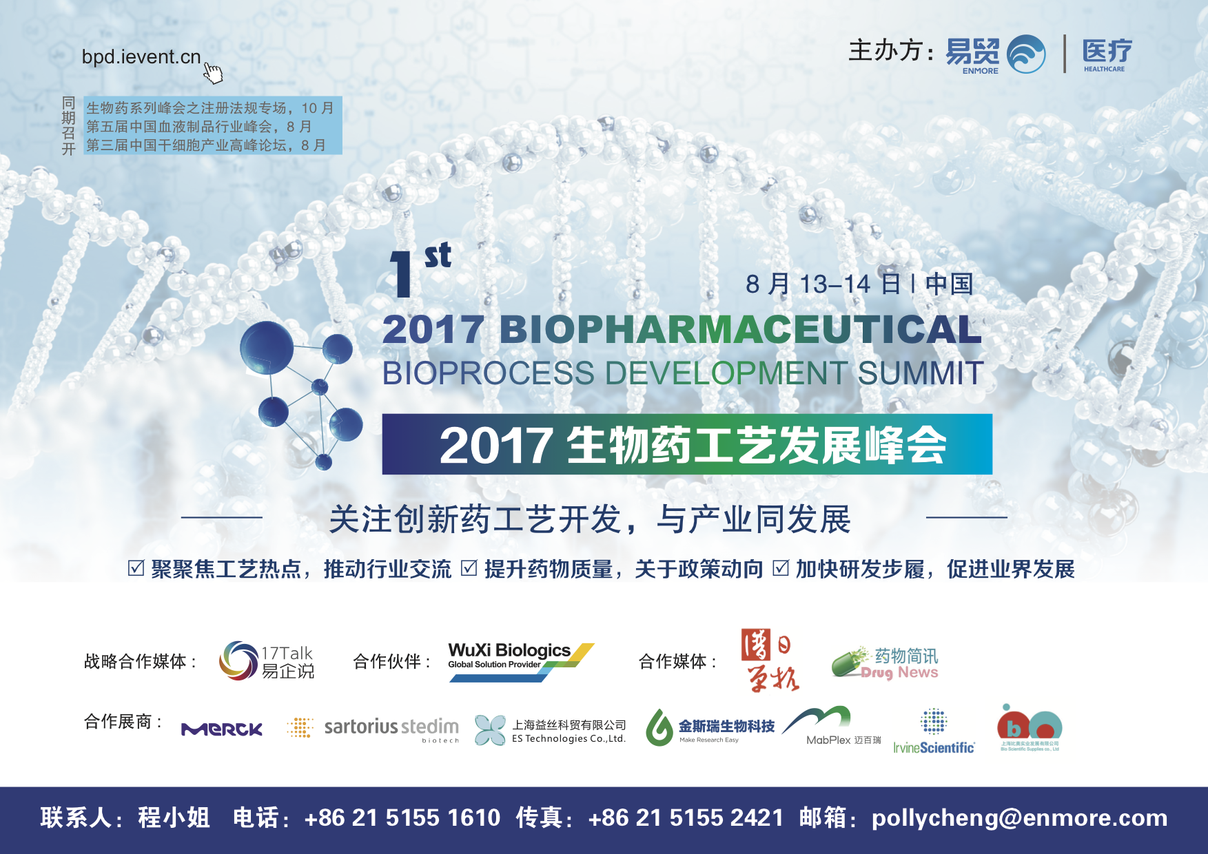 我司将参展2017生物药工艺发展峰会,此次峰会将关注创新药工艺开发,与产业同发展;聚焦工艺热点,推动行业交流;提升药物质量,关注政策动向;加快研发步骤,促进业界发展。