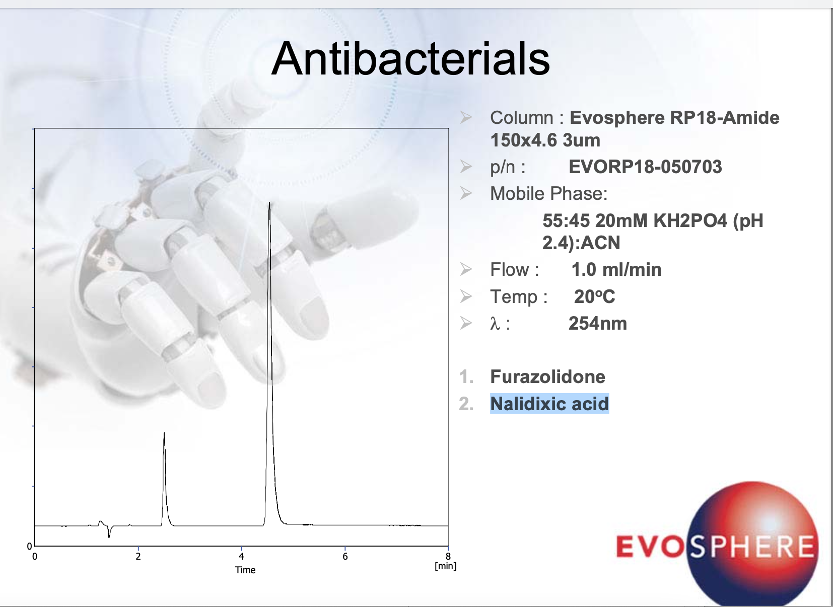 抗菌剂的分析: Evosphere RP18-Amide