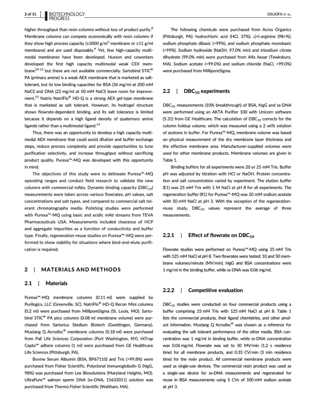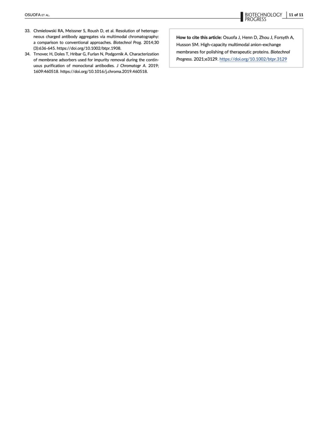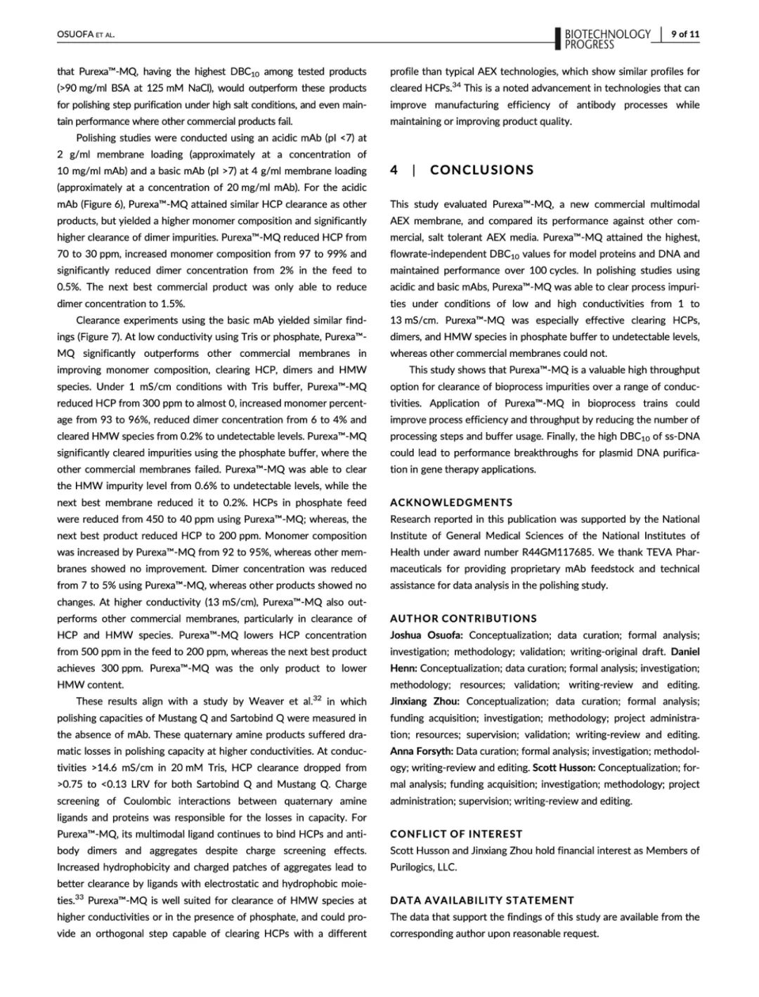 这项研究表明,Purexa MQ膜是一种有价值的高通量选择,可在一系列(不同)电导率的条件下上清除生物工艺杂质。Purexa MQ膜在生物工艺系列中的应用可以通过减少处理步骤的数量和缓冲液的使用来提高工艺效率和产量。另目前亦有很多公司应用该膜来进行质粒(基因治疗领域)的纯化,均取得了突破性的效果。